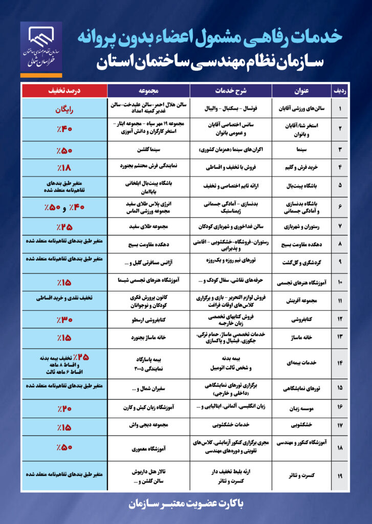 ۲- بهـرهمنـدی از خدمـات رفاهــی به شرح لیسـت پیوست