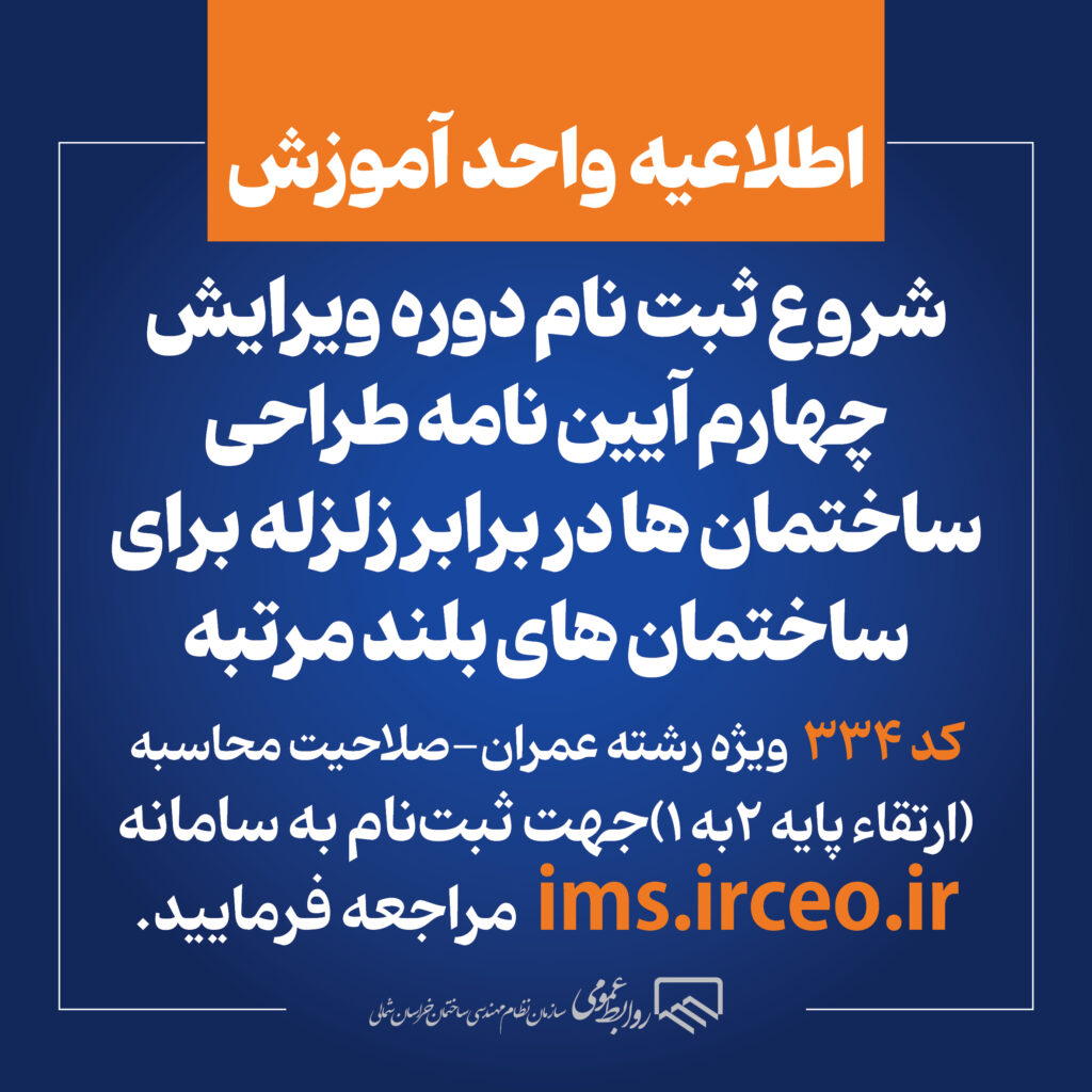 جهـت ثبـتنـام بـه سـامـانه ims.irceo.ir (http://ims.irceo.ir/) بخش آموزش مراجعه فرمایید.