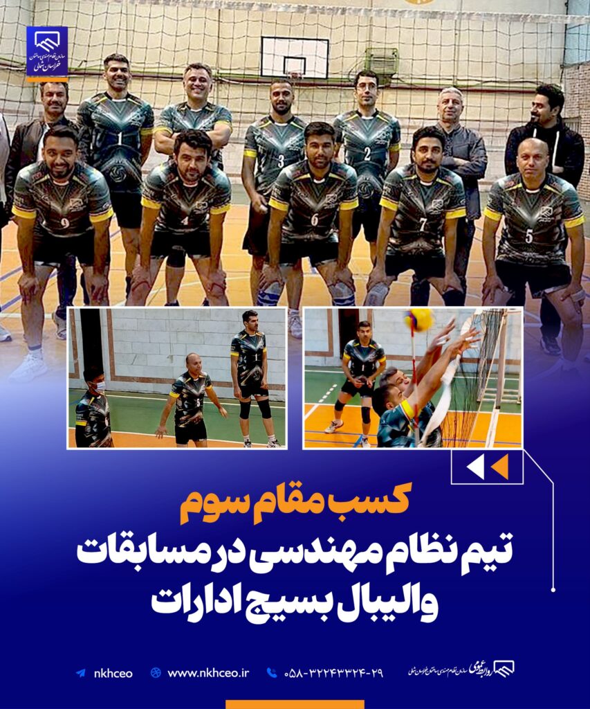 تیم والیبال آقایان سازمان نظام مهندسی ساختمان استان، در مسابقات بسیج ادارات موفق شد با عملکردی درخشان، مقام سوم این رقابتها را به دست آورد. حضور پرانرژی مهندسین و تلاش جمعی اعضای تیم، جلوهای از همبستگی و توانمندی جامعه مهندسی را به نمایش گذاشت.